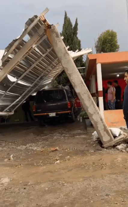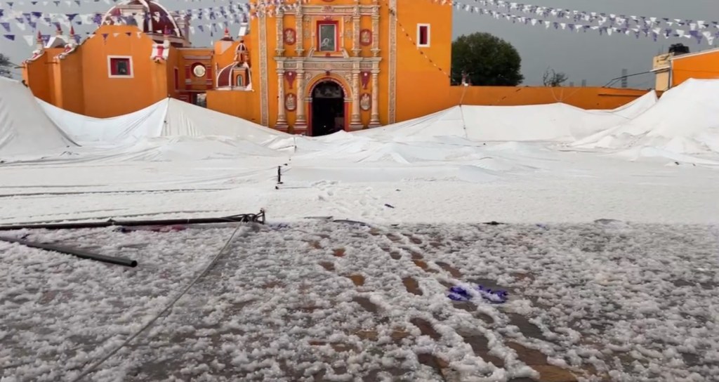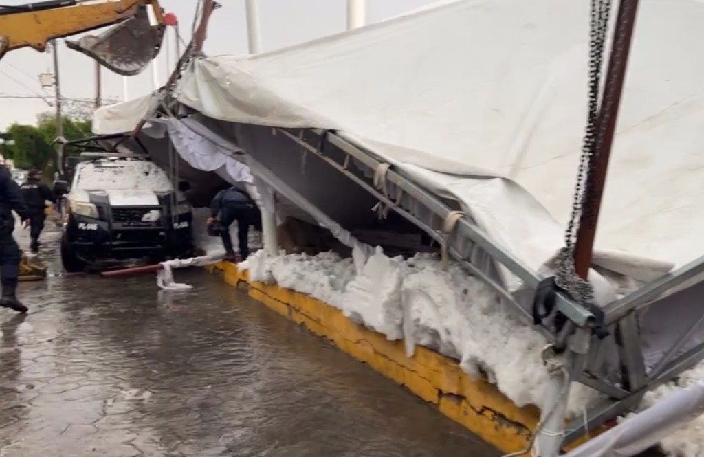 A través de vídeos y fotografías que los pobladores compartieron en redes sociales, se pueden observar techos colapsados por el peso del granizo, tal es el caso del domo de la explanada principal, ubicado en el centro de Los Reyes de Juárez frente a la presidencia municipal que se vino abajo.