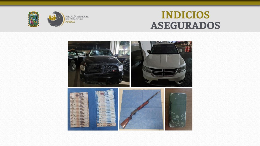 Durante la intervención los elementos aseguraron además un teléfono celular, el dinero producto de la extorsión, una camioneta Dodge Ram de Tlaxcala, una camioneta Dodge de la Ciudad de México y una escopeta.