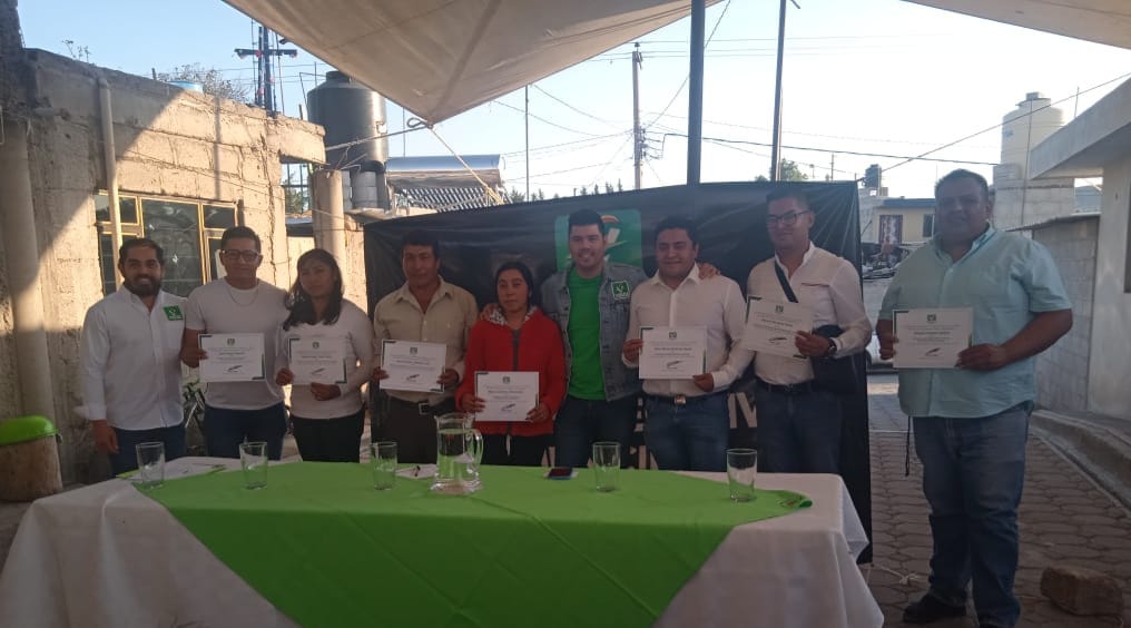 Acatzingo, Pue.- En días pasados, los integrantes del nuevo comité ejecutivo municipal en Acatzingo de Hidalgo del Partido Verde Ecologista de México (PVEM) rindieron protesta en la junta auxiliar de Nicolás Bravo, ante la presencia de militantes y simpatizantes del partido. La nueva coordinación municipal será guiada por Víctor Manuel Zambrano García.