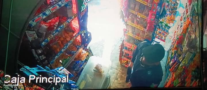 Amozoc, Pue.- Un presunto elemento de la Policía Auxiliar encabezada por Alejandro Ramírez Ulloa, fue captado en vídeo cuando asaltó a mano armada a una tienda de abarrotes en el municipio de Amozoc.